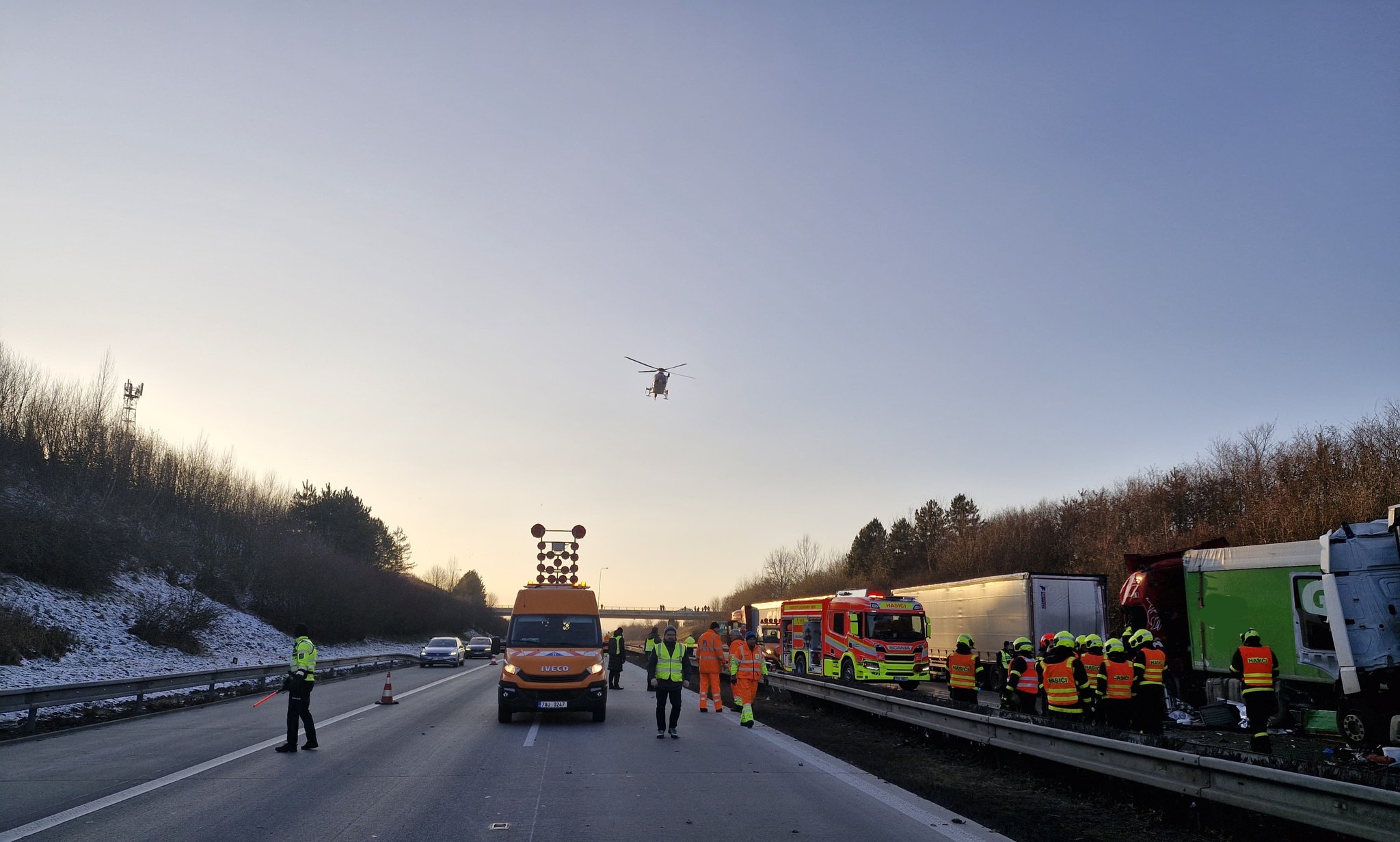 Dálnice D1 – Hned šest nákladních aut se chvíli po 14. hodině srazila na 351. kilometru dálnice D1 ve směru z Ostravy na Olomouc. Dálnice je uzavřena. Poblíž této nehody se stal další karambol, a to v protisměru, kde se srazila dvě vozidla.