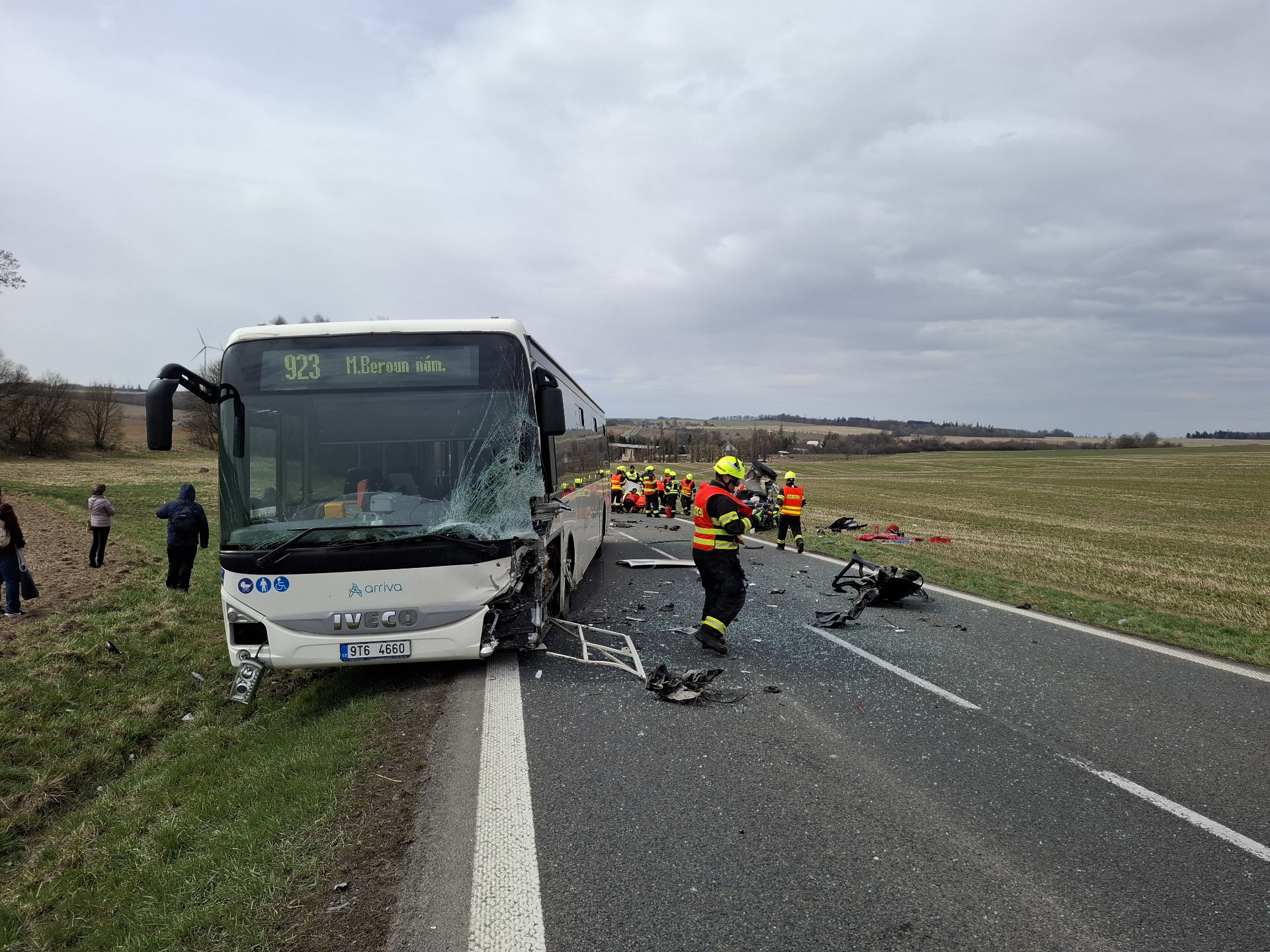 „Podle prvotních informací osmatřicetiletá řidička osobního vozu jedoucí ve směru od Moravského Berouna z dosud nezjištěných příčin přejela do protisměru, kde se čelně střetla s autobusem,“ uvedla policejní mluvčí Ivana Skoupilová.