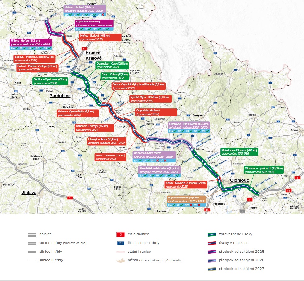 V roce 2025 zprovozní ŘSD na dálnici D35 nových 33 kilometrů a chce také začít stavět přes 16 kilometrů dlouhý úsek Úlibice – Hořice. Ministerstvo dopravy již vybírá koncesionáře PPP projektu na stavbu posledních dvou úseků mezi Opatovcem a Mohelnicí, jež by měla začít v roce 2026. Celá dálnice D35 by měla být hotová v roce 2029. Stavba je navržena ke spolufinancování Programu Doprava 2021–2027 z Fondu soudržnosti – OPD3.