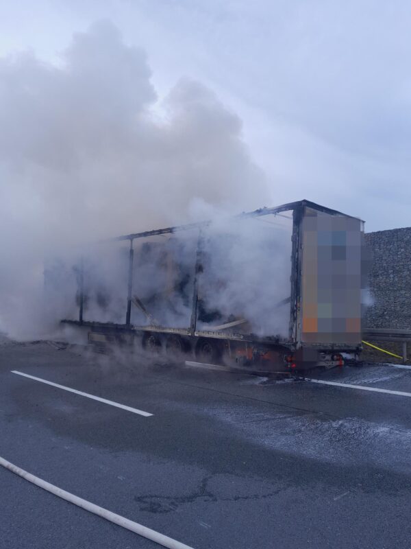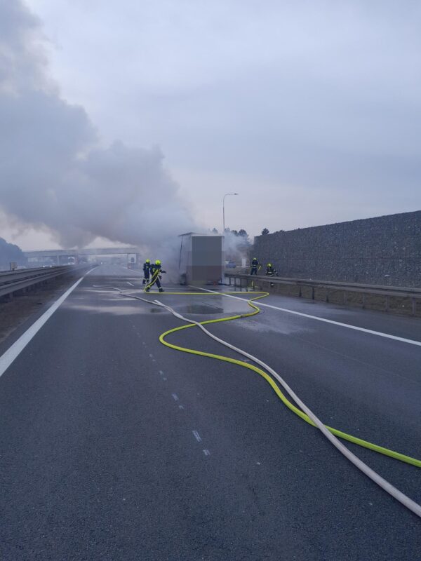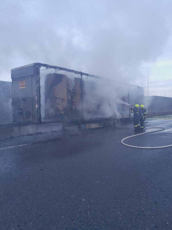 Dálnice D8 – Páteční ráno zkomplikoval řidičům na dálnici D8 rozsáhlý požár nákladního soupravy, ke kterému došlo kolem půl osmé v blízkosti Klíčan. Na třetím kilometru ve směru na Prahu začal v odstavném pruhu hořet návěs kamionu, což si vyžádalo okamžitou reakci několika jednotek hasičů i úplnou uzávěru komunikace.