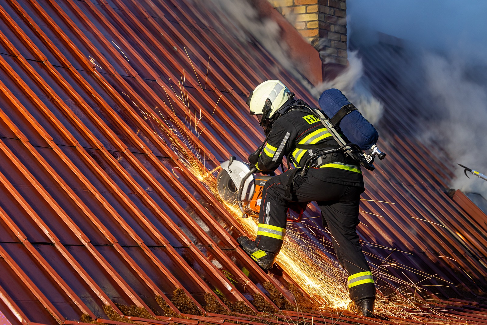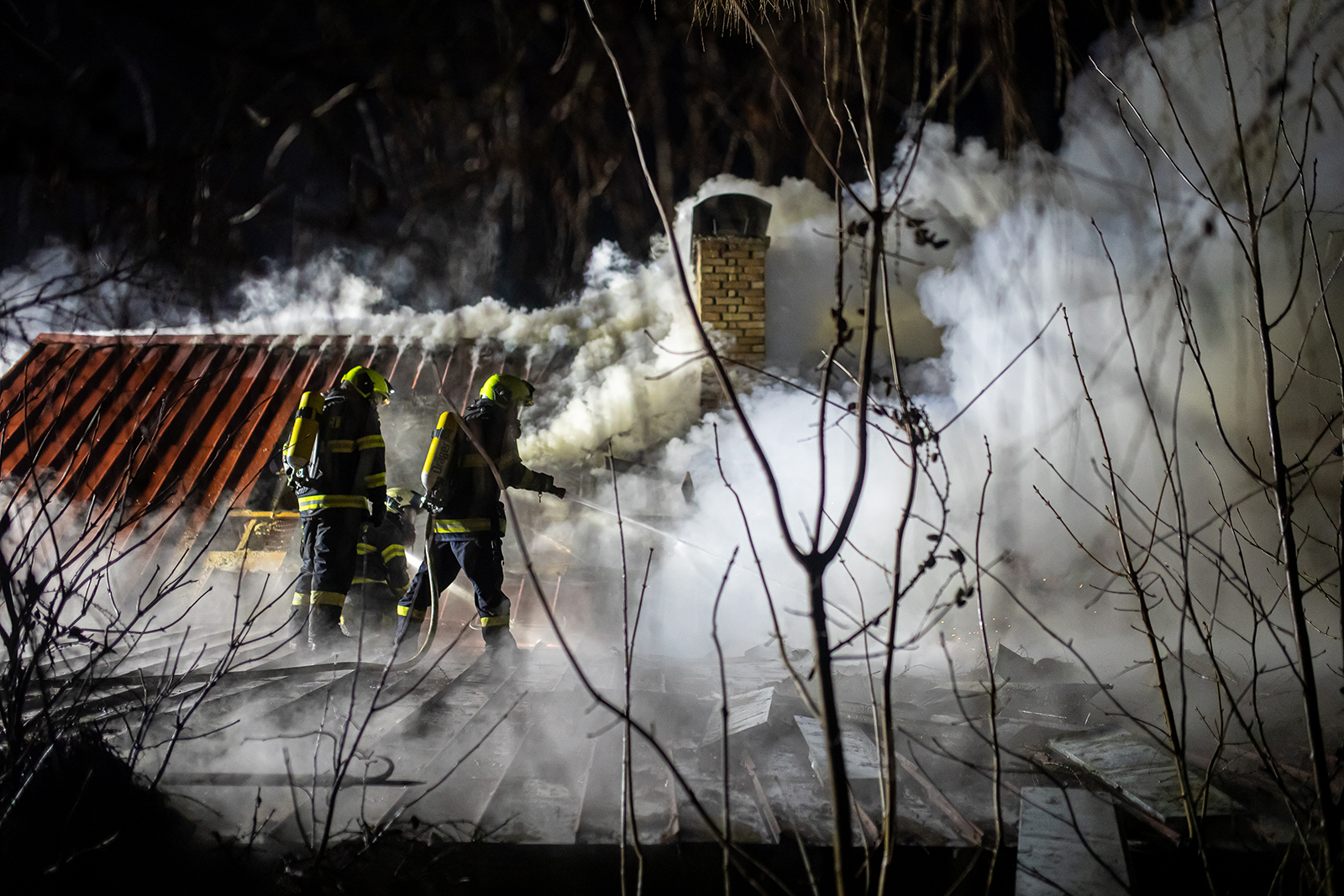 K hašení půdních prostor využívali mimo jiné speciální hasicí zařízení CCS Cobra, které dokáže řezat pomocí vysokotlakého vodního paprsku s abrazivem různé druhy materiálů a zároveň ochlazuje těžko přístupné prostory. Zásah probíhal za využití dýchací techniky, a právě s ohledem na množství spotřebovaných vzduchových lahví byl na místě i technický automobil chemický.