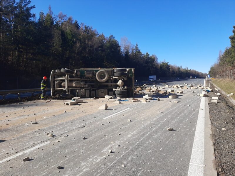 „Nákladní vůz se převrátil přes celou šíři dálnice, je vysypaný náklad,“ popsal situaci bezprostředně po havárii policejní mluvčí David Chaloupka a dodal: „Řidič vylezl z kabiny sám.“