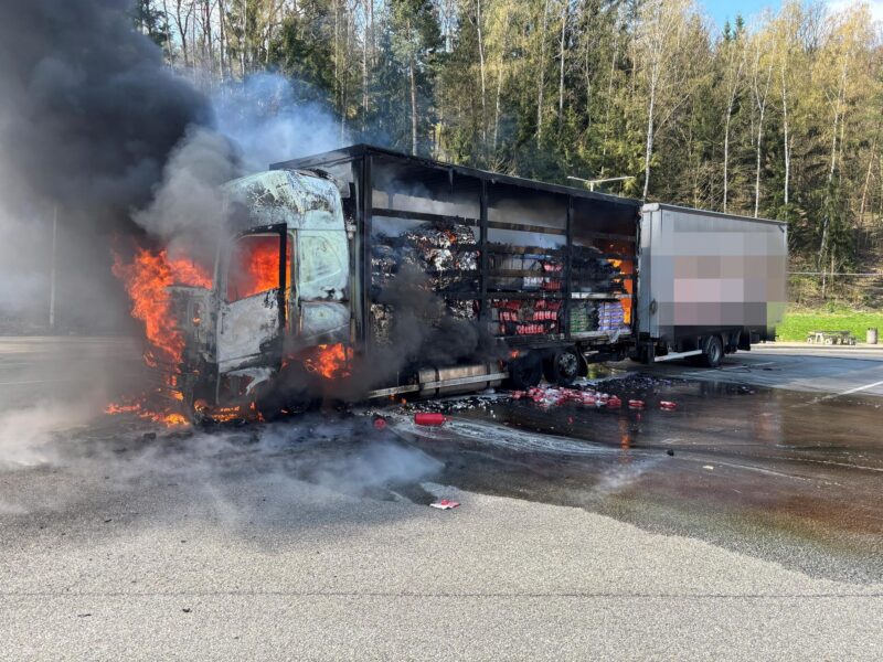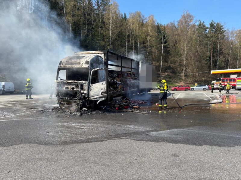 Všechlapy – V pátek dopoledne zasahovalo několik jednotek hasičů, a to jak profesionálních, tak dobrovolných, u požáru nákladního auta v areálu čerpací stanice na 44,5 km D1 směrem na Brno.