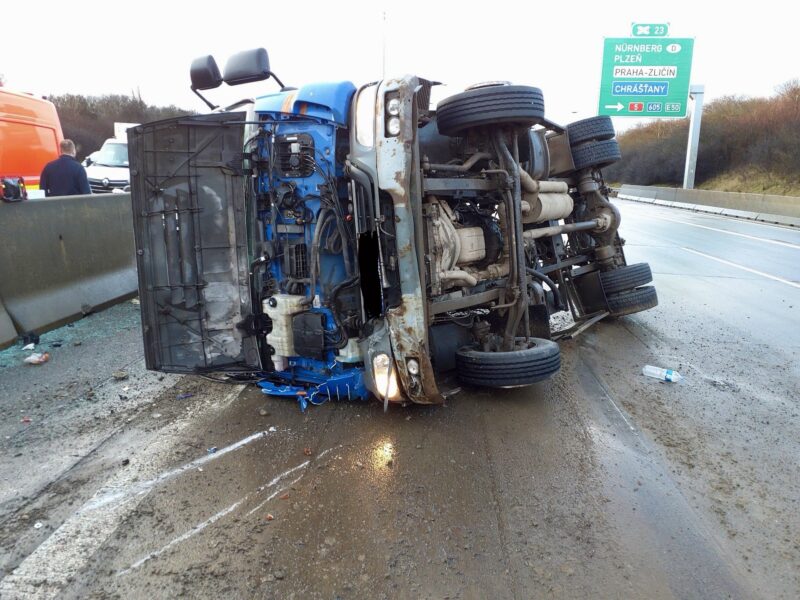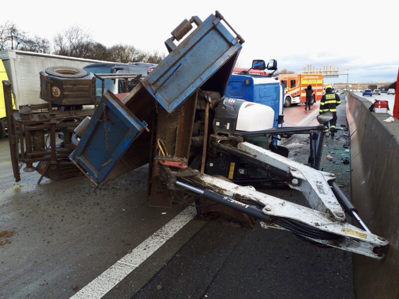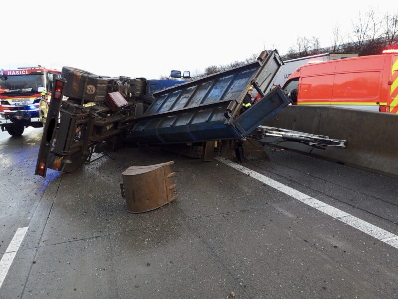 Praha – Pondělní ranní špičku na dálnici D0 u pražského Zličína ochromila nehoda nákladního automobilu. Na 24. kilometru ve směru od letiště k dálnici D5 se převrátil kontejnerový vůz, který převážel bagr. Událost se stala mezi sjezdy na Řepy a Chrášťany a okamžitě způsobila vážné potíže v plynulosti dopravy.