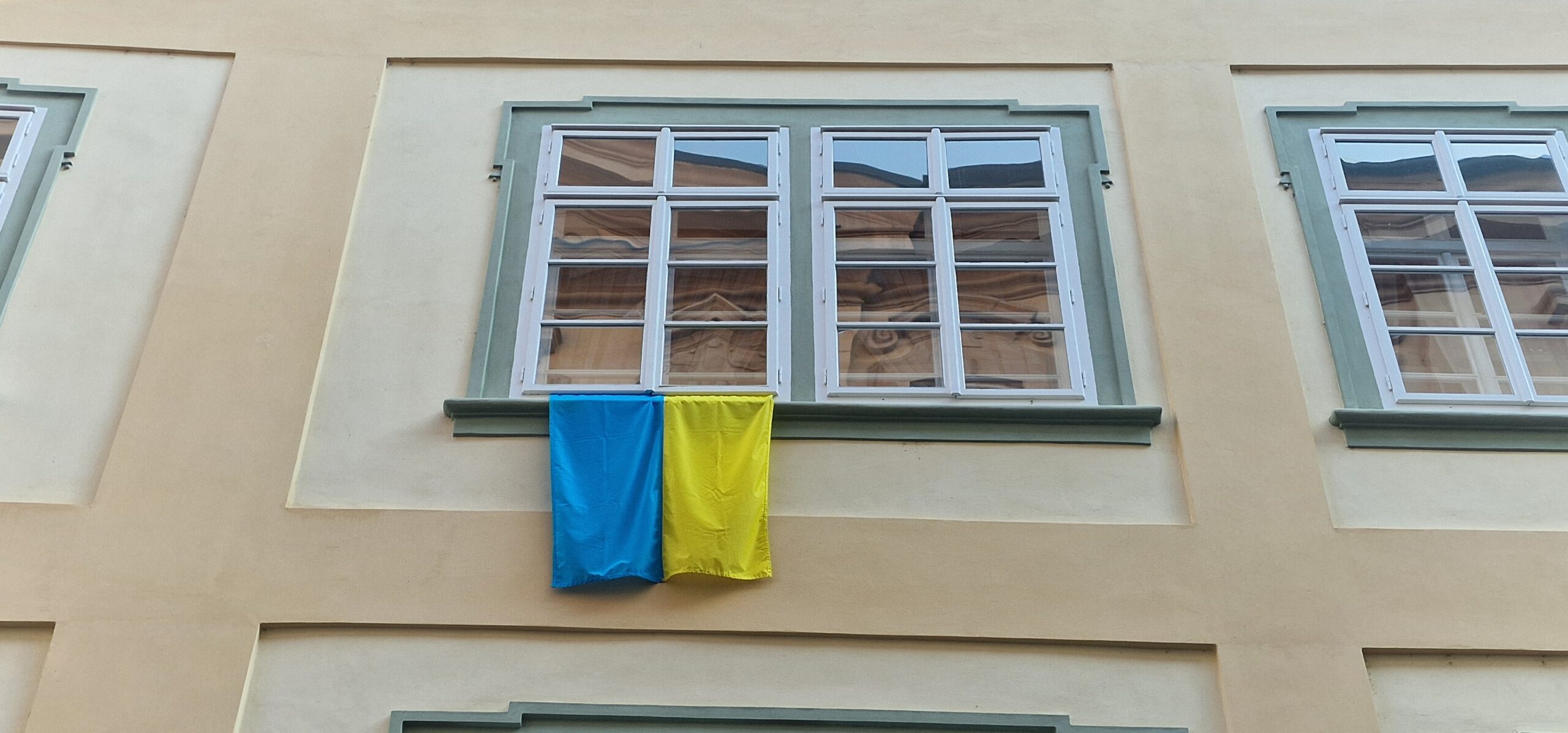 Absenci oficiálního symbolu na sněmovní budově se rozhodli kompenzovat opoziční poslanci. Ti v reakci na postup vedení dolní komory vyvěsili menší ukrajinské vlajky symbolicky z oken svých kanceláří.