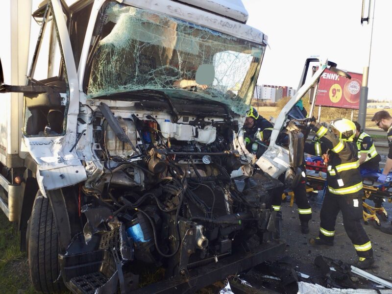 Jeden z účastníků nehody zůstal po nárazu ve zdemolované kabině zaklíněn. Záchranná akce, při které hasiči využili speciální techniku, trvala přibližně dvacet minut.