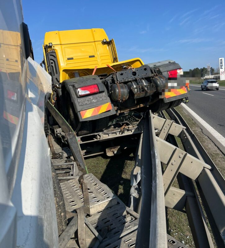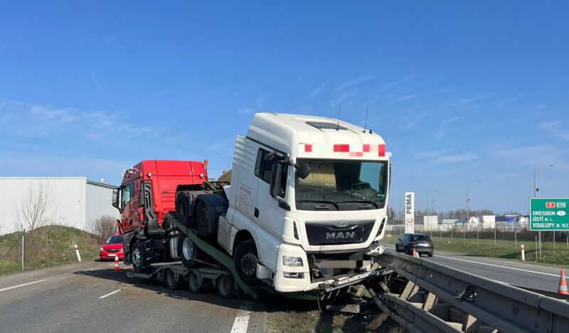 Dálnice D8 – Sobotní dopoledne přineslo vážné komplikace řidičům jedoucím po dálnici D8. Mezi prvním a druhým kilometrem došlo k havárii těžkého nákladního vozidla, které převáželo další tahač. Kamion při nehodě prorazil středová svodidla, což výrazně omezilo průjezd v obou směrech a vyvolalo tvorbu rozsáhlých kolon.