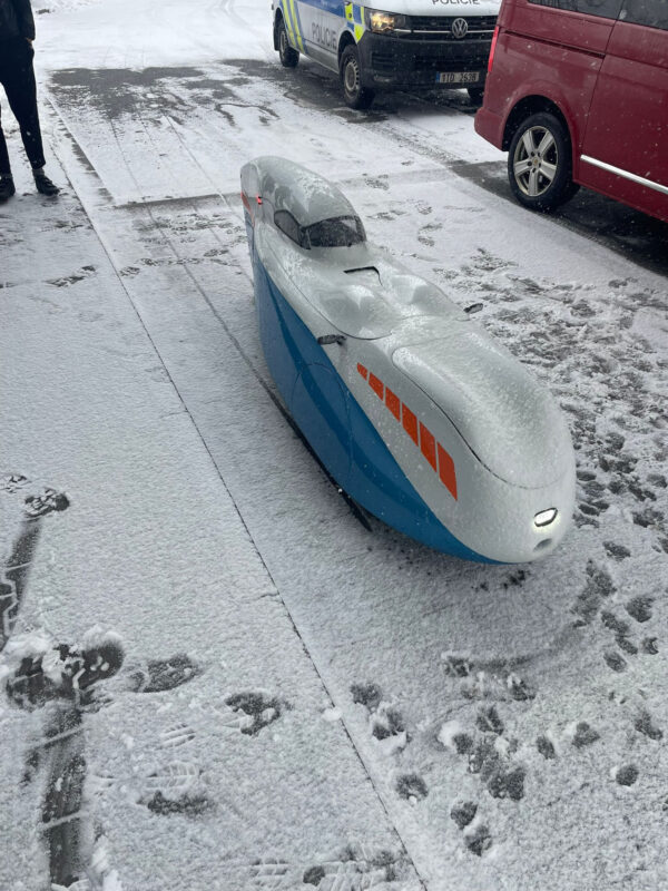 „Po zastavení z vozítka vystoupil muž, který uvedl, že se jedná o velomobil. Tento je poháněn lidskou silou a využívá ho v rámci tréninku,“ upřesnila k incidentu policejní mluvčí Pavla Jiroušková.