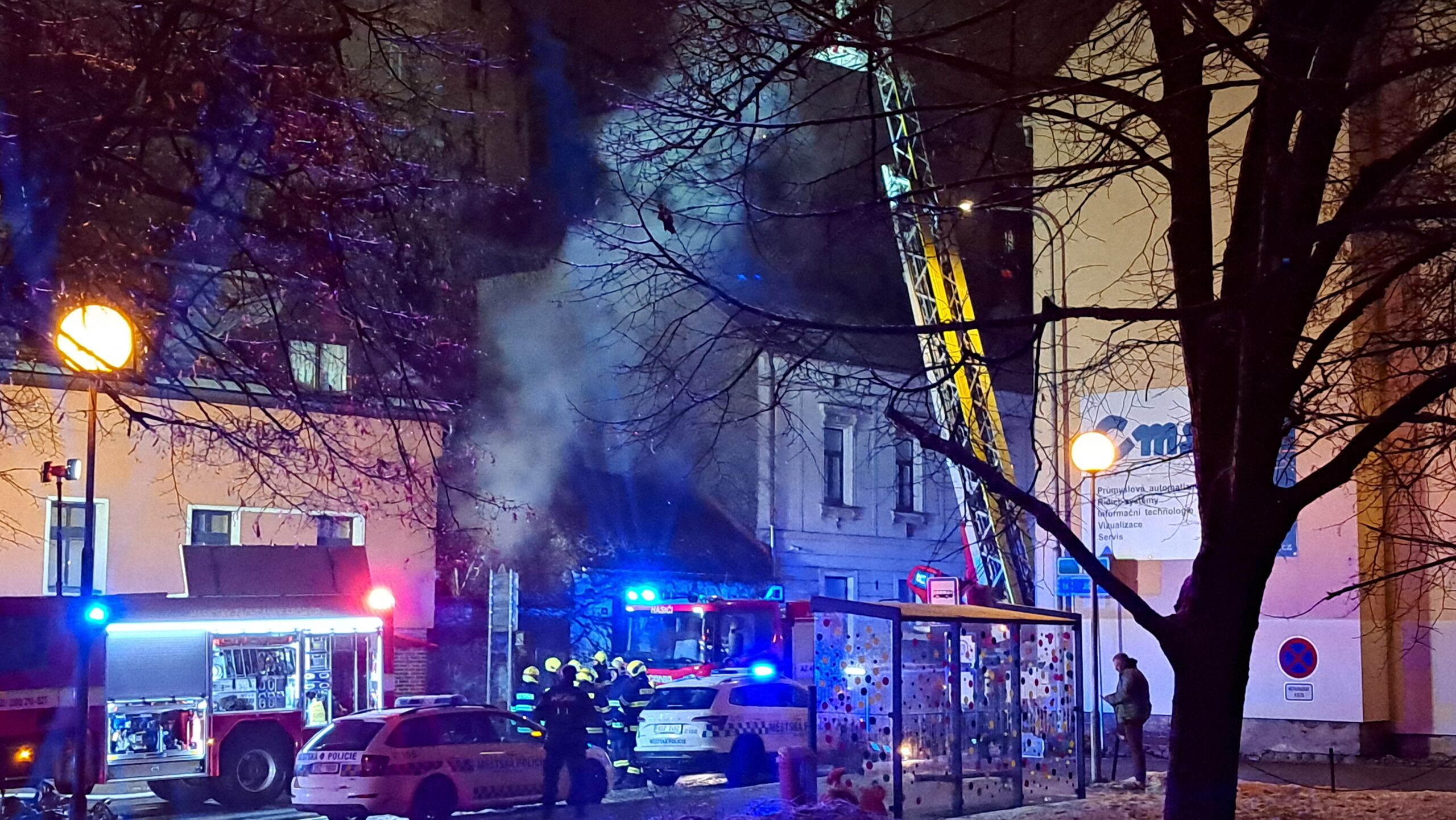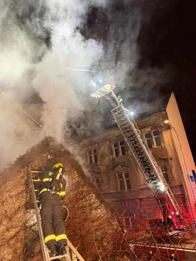 „Na místo události přijela první jednotka za deset minut a okamžitě potvrdila požár střešní konstrukce u rodinného domu. Nebezpečnou komplikací byl fakt, že dům přímo naléhal na větší budovu. V té bylo několik bytů a bezprostředně hrozilo rozšíření. Velitel zásahu tedy nařídil evakuaci a současně hasební práce. Cílem bylo zabránit rozšíření požáru na další budovy,“ uvedl mluvčí středočeských hasičů Jan Sýkora.