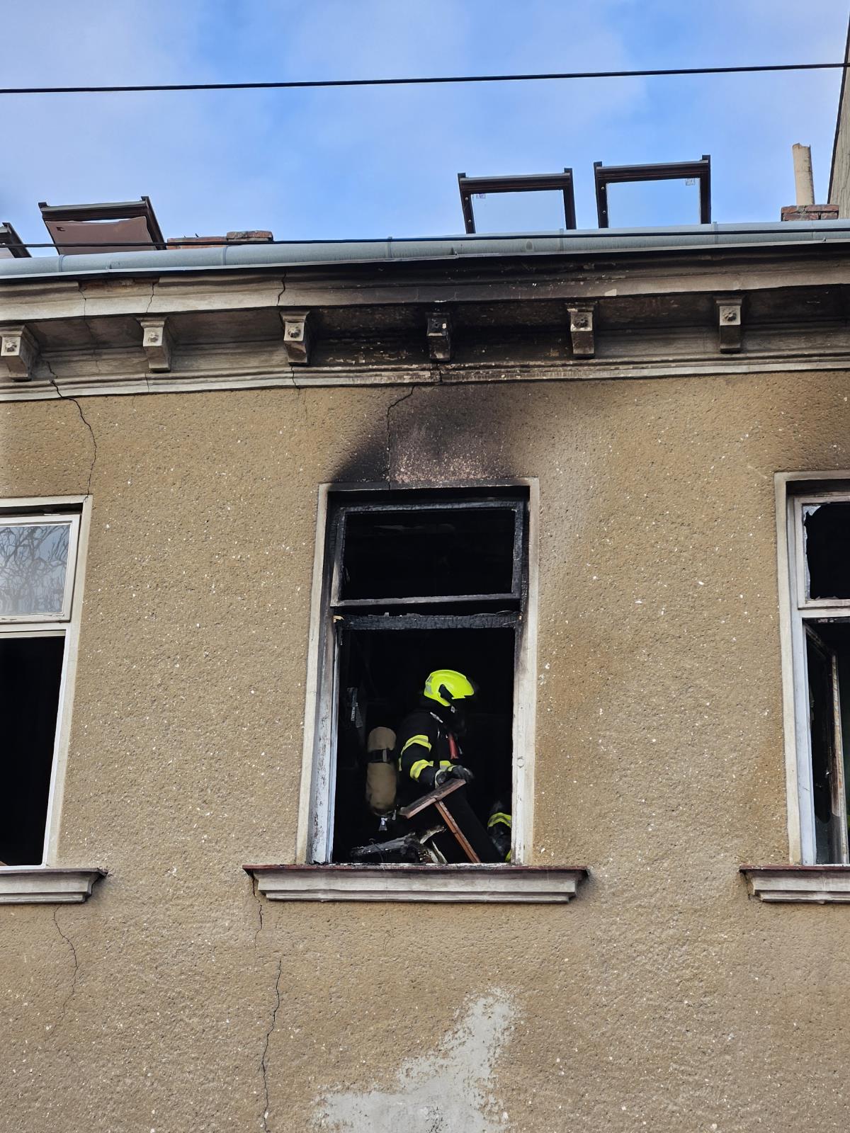 Hlášení o požáru v blízkosti brněnského výstaviště obdržely složky integrovaného záchranného systému v pátek krátce před 14. hodinou. Zatímco oba muži z bytu se dostali ven včas, starší žena zůstala uvězněna v horním patře pod spadlým nábytkem.