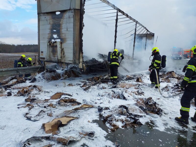 Dálnice D35 -Nákladní souprava s návěsem naloženým kartony začala hořet během středečního dopoledne na pardubickém úseku dálnice D35. Kvůli intenzivnímu zásahu záchranných složek museli policisté zcela uzavřít směr na Hradec Králové a Prahu, a to konkrétně mezi sjezdy Rokytno a Opatovice nad Labem.