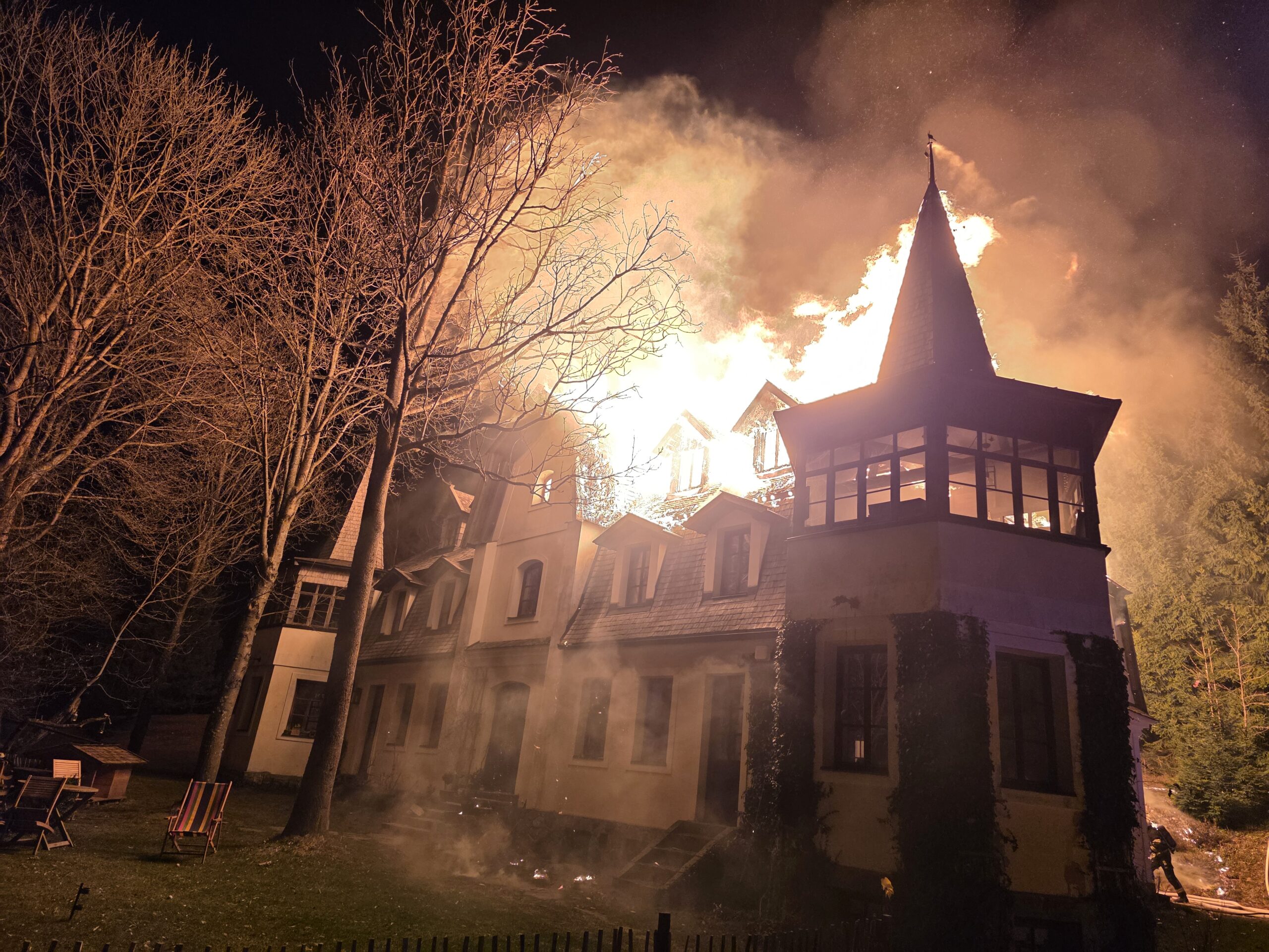 Benecko – Během noci na pondělí zasahovalo jedenáct jednotek hasičů u požáru dvoupatrové budovy v obci Benecko na Semilsku. Oheň zasáhl především střešní konstrukci objektu a napáchal škody, které vyšetřovatelé předběžně odhadli na 18 milionů korun. Celá událost se obešla bez zranění, jelikož všichni obyvatelé stihli budovu včas opustit.