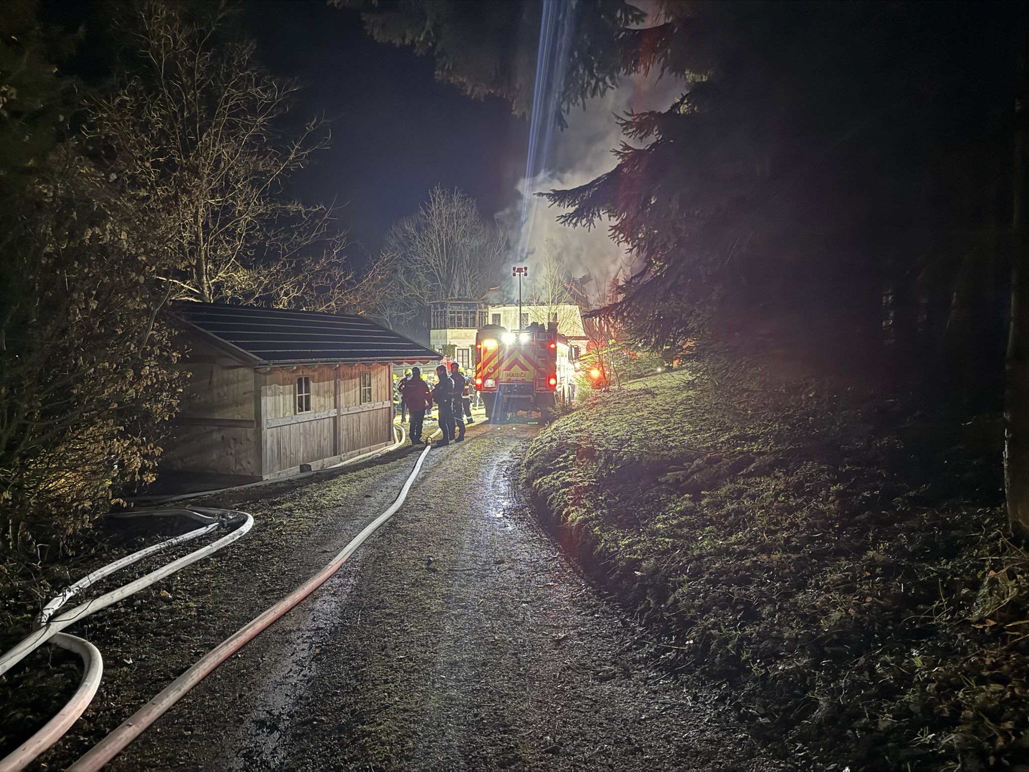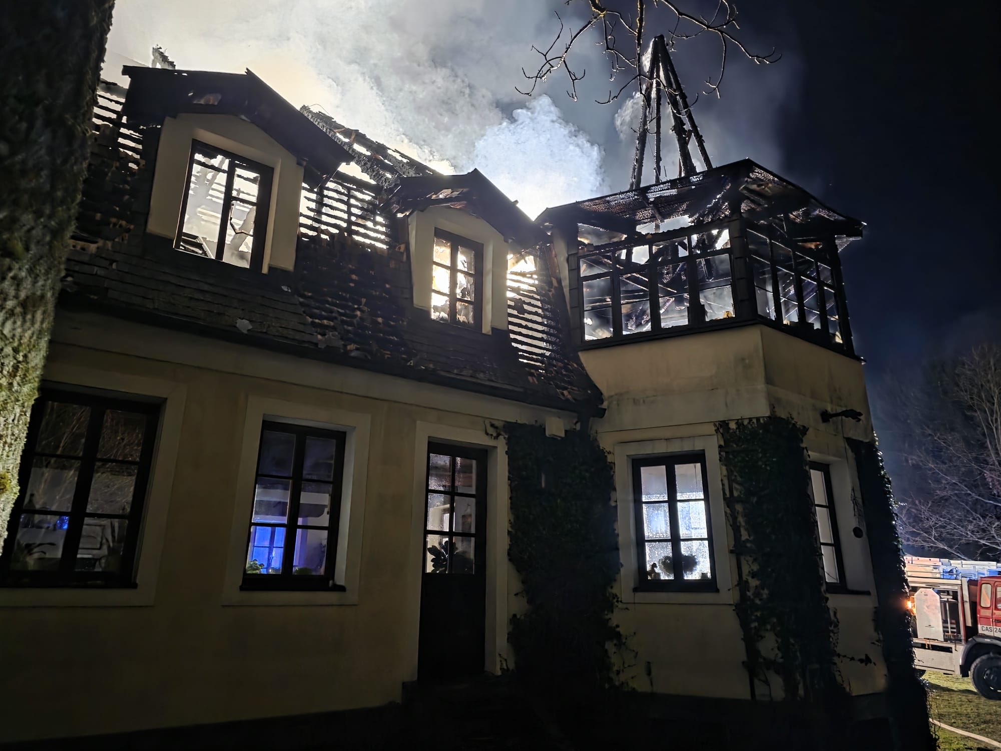 Přestože byla hlavní ohniska zlikvidována, jednotky na místě setrvaly po celou noc, aby prováděly dohlídku a zabránily případnému opětovnému vznícení konstrukce.