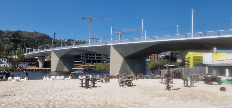 Praha má od dnešního dopoledne jednadvacátý most přes řeku Vltavu. Slavnostního otevření nové stavby, která spojuje městské části Praha 4 a Praha 5, se v 11:43 hodin zúčastnili zástupci magistrátu, dotčených radnic i autoři projektu. Nové přemostění je určeno primárně pro hromadnou dopravu, cyklisty a chodce, zatímco pro individuální automobilovou dopravu zůstává uzavřeno.