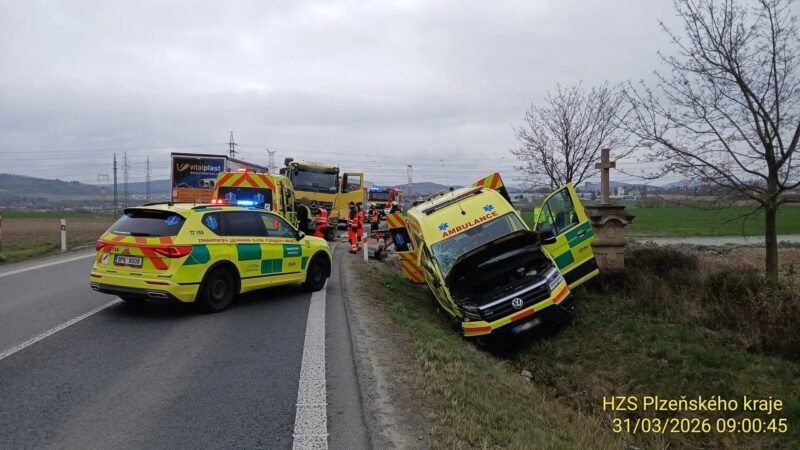 Dolní Lukavice – V úterý dopoledne došlo na hlavním silničním tahu I/27 na Plzeňsku k vážné dopravní nehodě. Sanitní vůz převážející pacienta se v úseku u Dolní Lukavice střetl s nákladním automobilem. V důsledku kolize skončilo záchranářské vozidlo mimo komunikaci v silničním příkopu.