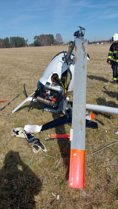 Stradov – Jihočeští policisté a záchranné složky dnes zasahovali u letecké havárie na Českokrumlovsku. V sobotu v dopoledních hodinách se do pole u obce Stradov nedaleko Kaplic zřítil malý jednomístný vrtulník. Pilot stroje utrpěl při dopadu zranění, podle aktuálních informací však nehodu přežil.