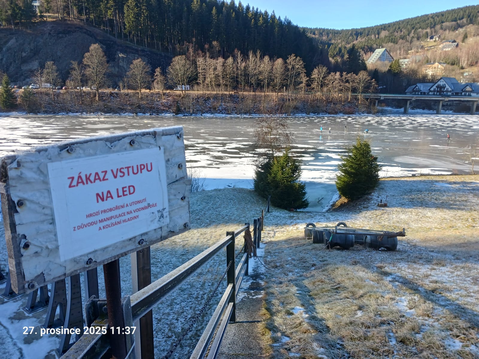 „Chtěli bychom upozornit návštěvníky Špindlerova Mlýna a zejména ty, kteří hledají i jiné vyžití než lyžování. Mrzne pouze týden, led na přehradě Labská dosahuje tloušťky do 8 cm, a to pouze při březích. Vydávat se na ledovou plochu přehrady je tudíž riskantní a v některých případech i život ohrožující. Bohužel se najdou i tací, kteří bez problémů ohrožují i životy jiných,“ uvedli strážníci, kteří zároveň zveřejnili i video.