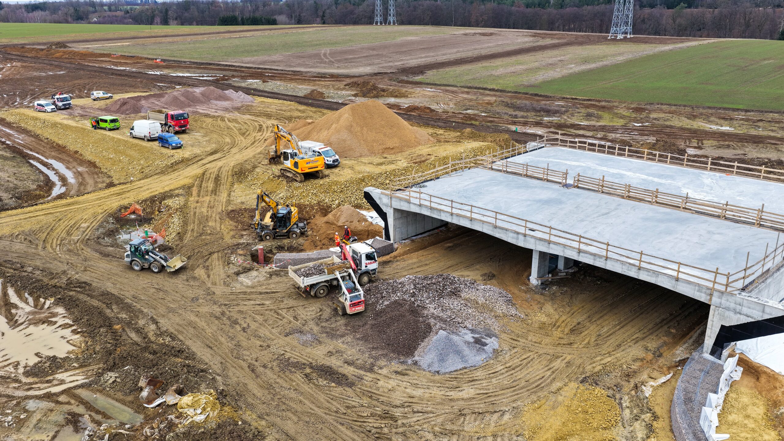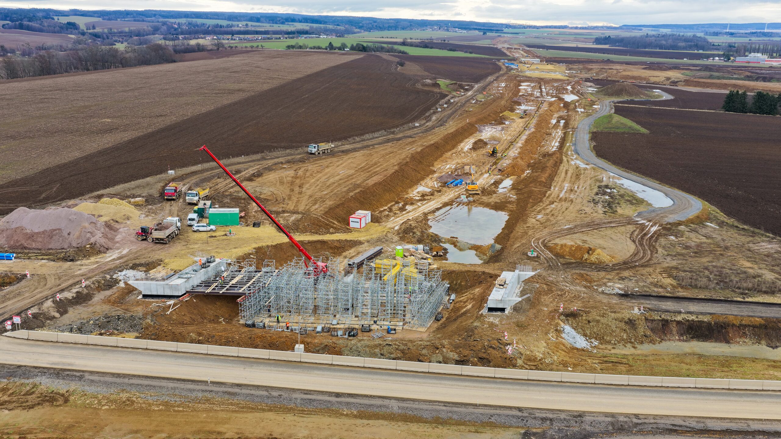 Vzhledem k aktuálním klimatickým podmínkám se zhotovitel zaměřuje na hrubé zemní práce, které zahrnují odtěžování zářezů a budování násypů. Specifikem tohoto úseku je geologické podloží, které v určitých částech vyžaduje řízené odstřely hornin. Tento postup je nezbytný pro dosažení projektované nivelety dálnice a následnou stabilizaci podloží pro budoucí vozovkové vrstvy.