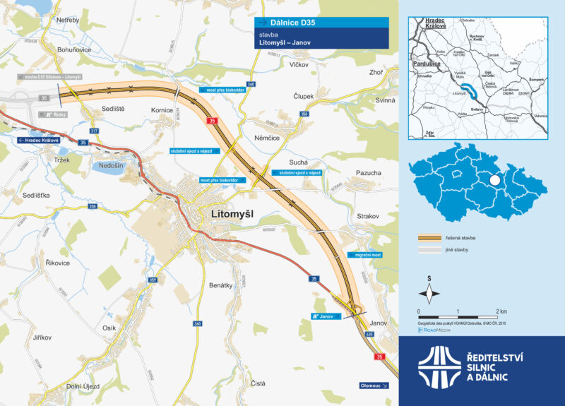 Litomyšl – Realizace klíčového úseku dálnice D35 mezi Litomyšlí a Janovem v současné době probíhá v plném nasazení. Stavební práce na tomto desetikilometrovém úseku se soustředí především na rozsáhlé zemní úpravy a budování mostních konstrukcí, které tvoří technicky nejnáročnější části celé trasy.