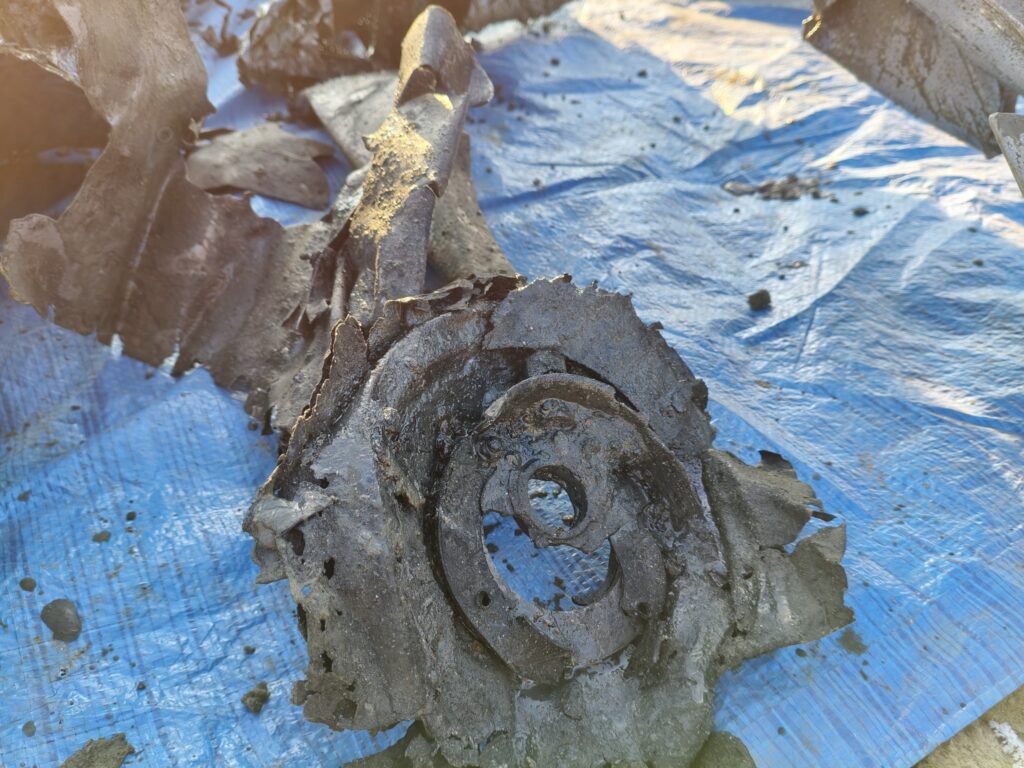 „Bahno odhalilo fragmenty stroje, včetně motoru, vrtule nebo kola. Bylo tam štěrkové podloží, kde se ten motor hodně rozbil. V podstatě je to torzo motoru, který je na několik dílů,“ uvedl Petr Bartošík, vedoucí sekce vojenské sekce historie Muzea městysu Suchdol nad Odrou